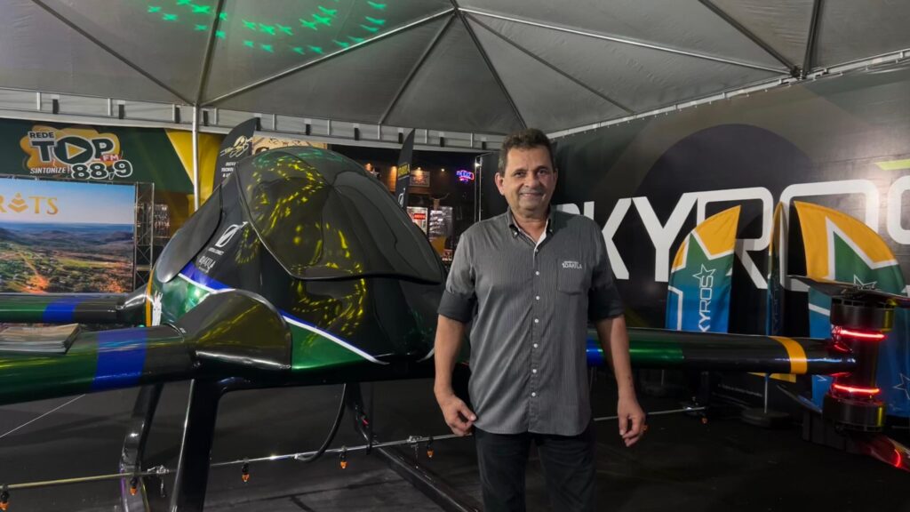 Na 86ª edição da Expogrande, um dos mais importantes eventos do agronegócio brasileiro, uma inovação tecnológica chamou a atenção entre os expositores. O empresário Urandir Fernandes de Oliveira, presidente do grupo Dakila, apresentou o Skyros, um eVTOL agrícola descrito como o maior “carro voador” voltado ao setor rural.